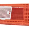 قفص بلاستيكي باللونين الأحمر والأبيض، قابل للتفكيك بالكامل لتسهيل التخزين والنقل.